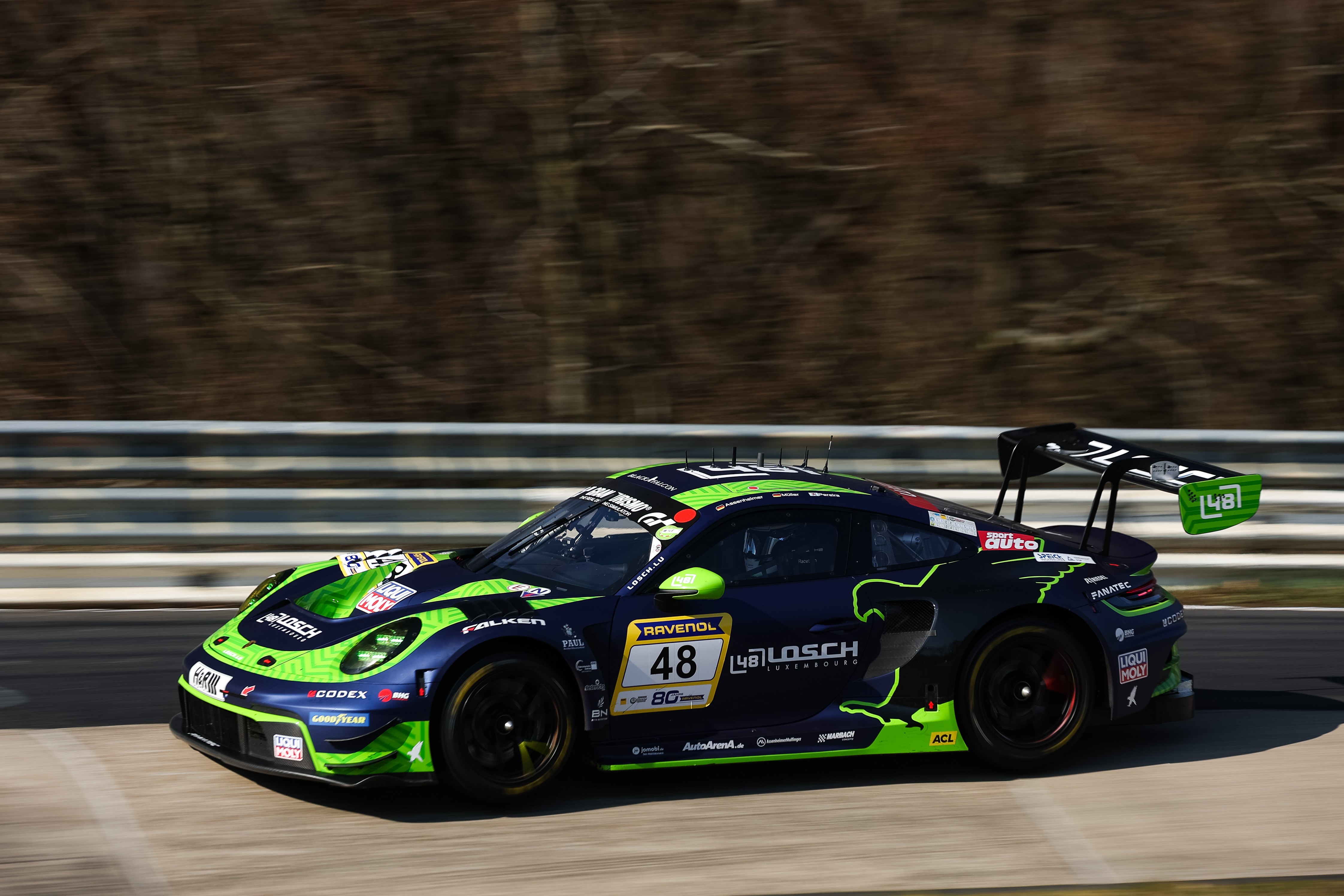 Für das Team 48 LOSCH Motorsport by BLACK FALCON begann, nach zwei überaus erfolgreichen Jahren in der Porsche Endurance Trophy Nürburgring CUP2 (PETN), beim 58. ADAC Barbarossapreis mit dem fabrikneuen Porsche 911 GT3 R (#48) ein neues Kapitel: Patrick Assenheimer, Tobias Müller und Dylan Pereira lieferten ein mehr als überzeugendes Debüt ab und boten den 25.000 Zuschauern entlang der Nürburgring Nordschleife von Beginn an eine tolle Show mit intensiven Zweikämpfen. Nach vier Stunden überquerte das Trio zunächst auf der vierten Gesamtposition die Ziellinie, rückte jedoch durch die spätere Disqualifikation des Siegers noch auf den dritten Platz nach vorne. Am Ende fehlten gerade einmal 4,2 Sekunden auf den späteren Gesamtsieger, was den performanten Auftritt nochmals unterstreicht. Assenheimer, Müller und Pereira sicherten sich zugleich auch den ungefährdeten Sieg in der SP9 PRO-AM Klasse.